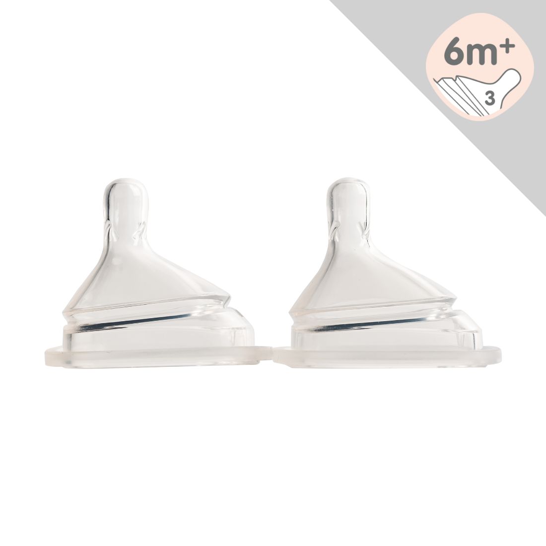 ニップルのサイズは月齢に合わせて設計していますが、あくまでも目安。赤ちゃんそれぞれに発育や授乳のタイミング、飲む力やクセは違います。豊富なサイズの中からベビーのいまに最適なニップルをお選びください。